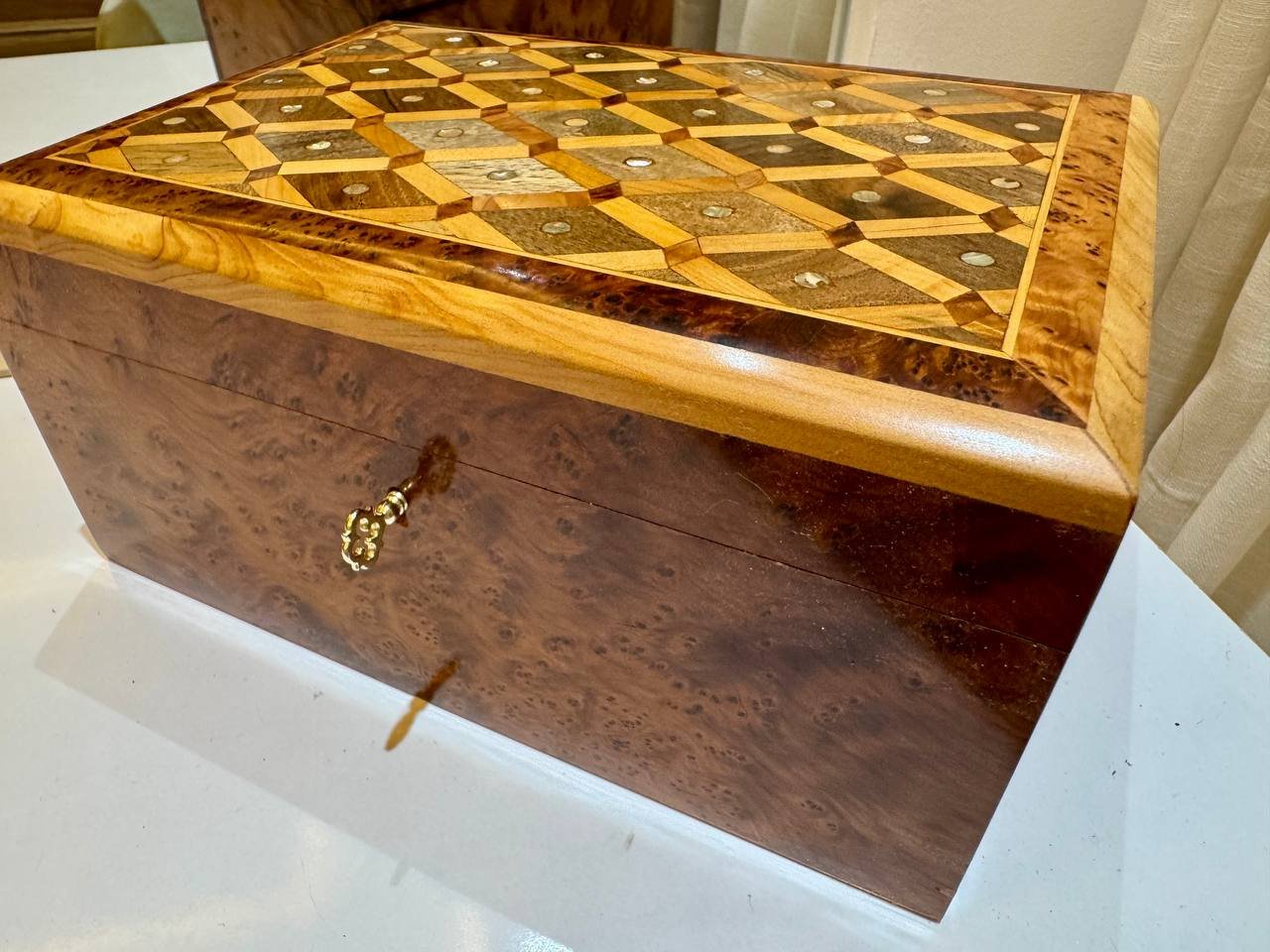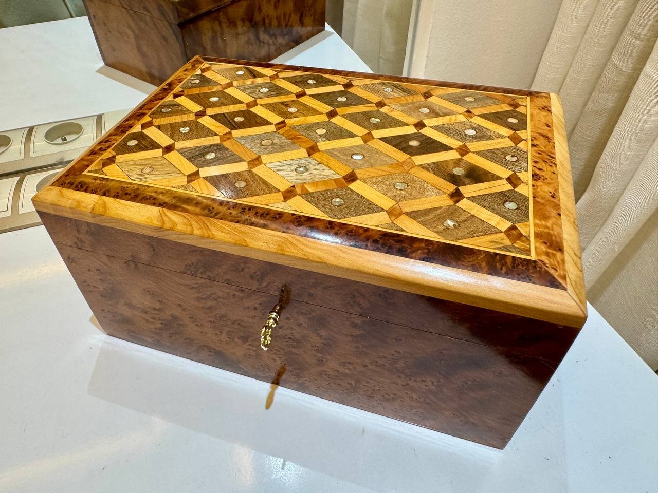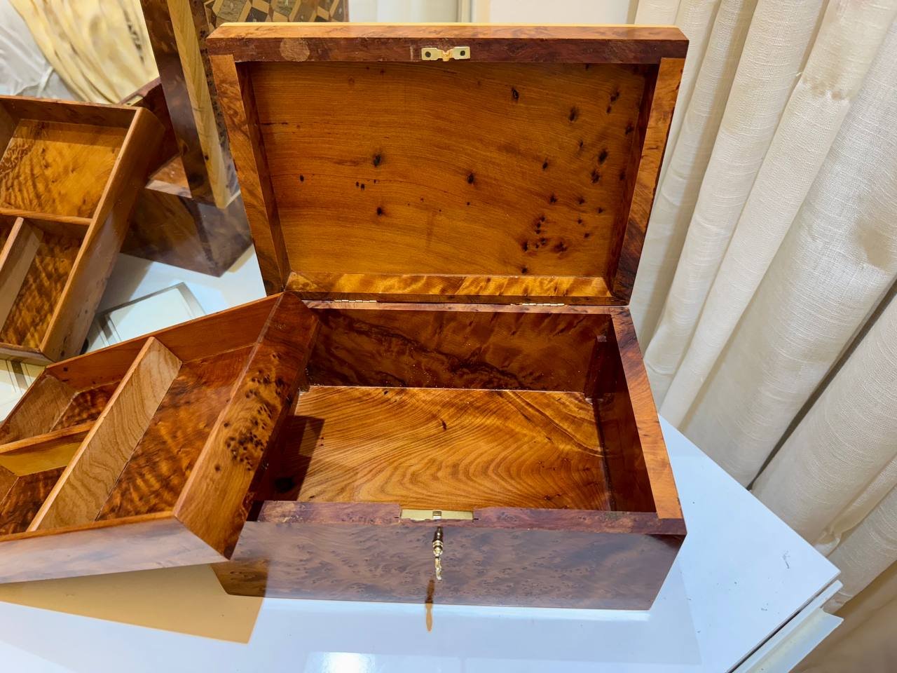 Wooden Organizer Wood Box with Key, Handcrafted Thuya Keepsake Decor